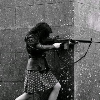 Fotografía tomada en Irlanda en 1972, de una chica disparando el arma de su novio herido en una batalla contra el ejército británico (Él sobrevivió luego de ser transportado a un lugar seguro, ella enfrentó a los soldados británicos hasta ser asesinada).